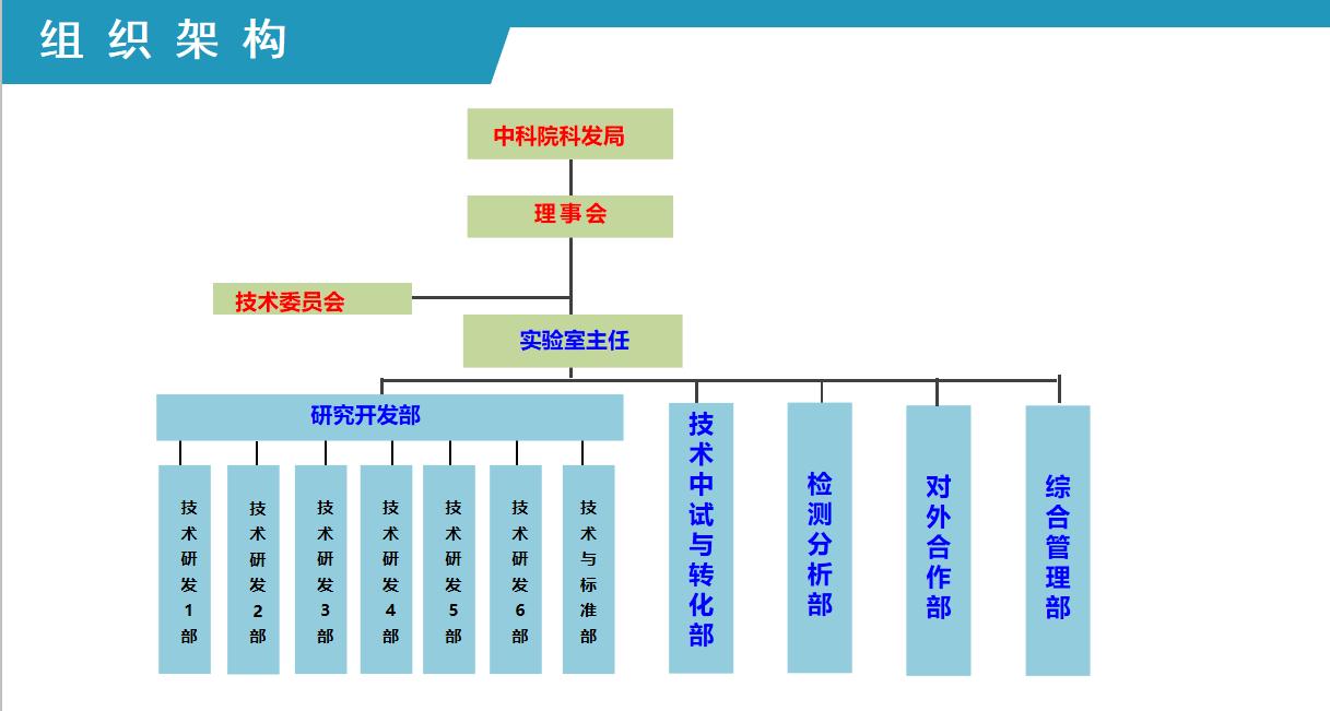 中國科學院新型特種精細化學品工程實驗室依托廣州化學,由院科發局統籌管理。“工程實驗室”實行理事會領導下的主任負責制,下設研究開發部(包括6個研發技術部門,1個技術與標準部,負責技術研發、標準制訂等)、技術中試與轉化部(負責實驗室小試成果的中試和轉化)、檢測分析部(檢測方法與技術)、對外合作部(負責對外技術合作與交流)、綜合管理部等部門。實驗室成立由行業內院士、著名專家、學者等組成技術委員會,把握實驗室研發方向。