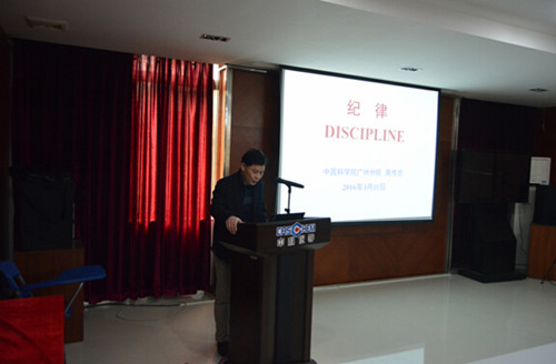 3月11日,中國科學院廣州分院黨組副書記、紀檢組組長周傳忠在監察審計處處長彭斌的陪同下到中科院廣州化學有限公司(廣州化學)作學習《中國共產黨廉潔自律準則》(《準則》)、《中國共產黨紀律處分條例》(《條例》)巡回報告會。廣州化學全體在職黨員和中層及以上領導干部參加會議。會議由廣州化學黨委副書記、紀委書記劉偉區主持。