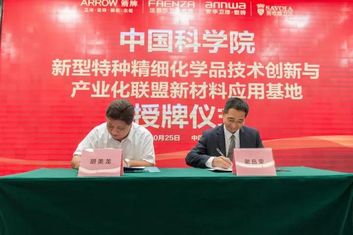 10月25日,在樂華集團箭牌總部大廈,舉辦了“中國科學院新型特種精細化學品技術創新與產業化聯盟(精細化學品聯盟)新材料應用基地”授牌儀式。國科控股董事、總經理索繼栓,中科院廣州化學有限公司(廣州化學)黨委書記、董事長胡美龍,廣東省建材協會會長吳一岳,樂華家居集團董事總經理謝岳榮等領導和嘉賓出席了授牌儀式。