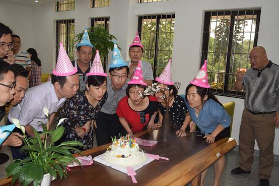 七月生日的員工們一起點燃蠟燭,在生日歌聲中許下心愿,工會為每位壽星們精心準備了小禮物,大家在歡聲笑語中品嘗美味的蛋糕……