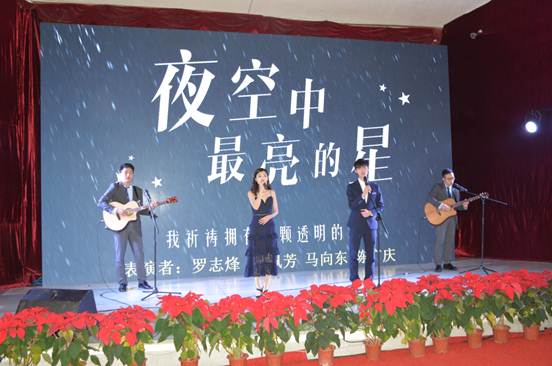 文藝匯演開始前,廣州化學全體領導班子成員走上舞臺向全體員工獻上了新春的祝福。文藝匯演在嘹亮的《 歌唱祖國 》中拉開了序幕,詩朗誦《我們的夢、廣化夢、中國夢》展現了廣化人頑強拼搏,為夢想不斷努力奮斗的精神;手語舞蹈《愛》勾起了大家滿滿的回憶;語言節目《三句半》引起了滿堂的歡聲笑語;獨舞《羞答答的玫瑰靜悄悄的開》,以優雅的舞姿為文藝匯演注入一股清新的暖流;吉他彈唱《成都》+《夜空中最亮的星》歌曲或深情款款、或歡快明朗,帶動了匯演的氣氛;《三人小人舞》不時地引得現場觀眾爆發出陣陣的笑聲和掌聲。節目過程中還穿插了抽獎環節與臺下觀眾進行了互動。