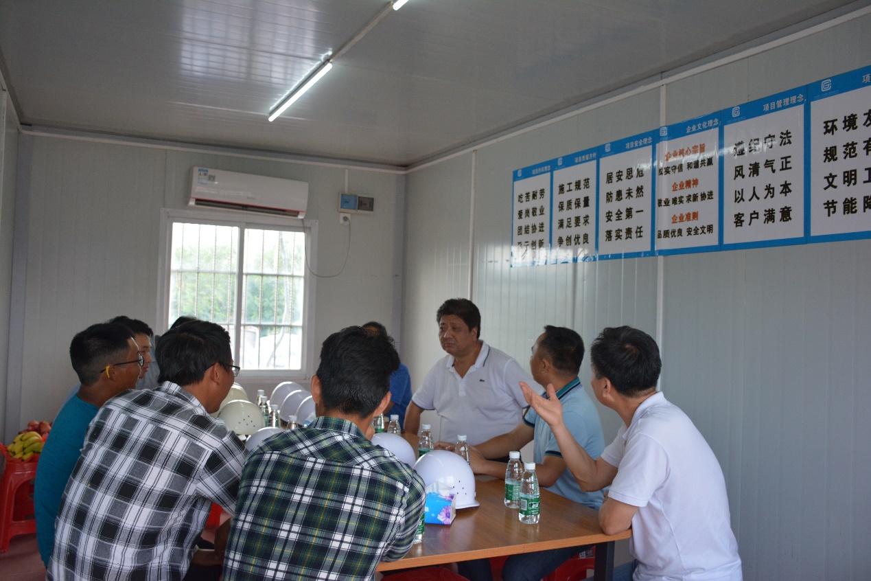 胡美龍等聽取了施工情況的匯報(bào),了解施工的進(jìn)度和遇到的困難及問題,并召開了一線員工座談會(huì),了解他們?cè)诠ぷ魃钪杏龅降膯栴}。針對(duì)工程施工和員工反映的實(shí)際問題向隨行的化灌公司負(fù)責(zé)人提出了具體的整改要求。