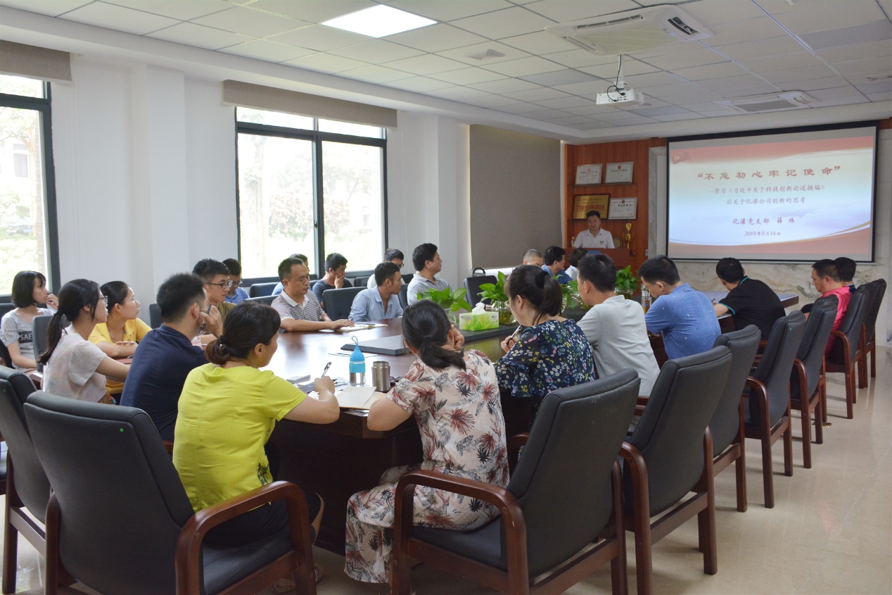 會上,在認真聽取了薛煒以“學習《習近平關(guān)于科技創(chuàng)新論述摘編》后關(guān)于化灌公司創(chuàng)新的思考”為主題的黨課后,胡美龍與全體參會人員一起回顧了化灌公司的發(fā)展歷程。他指出化灌公司成長壯大的過程充分說明技術(shù)創(chuàng)新、機制創(chuàng)新、管理模式創(chuàng)新在企業(yè)發(fā)展中的重要地位和作用。此次調(diào)研也是踐行“守初心,擔使命、找差距、抓落實”要求的一項重要舉措。