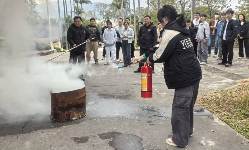 培訓還開展了滅火器演練實操活動,現場參與的職工與學生在專業人員的指導下,使用干粉滅火器迅速準確撲滅火焰,消防演練順利結束。