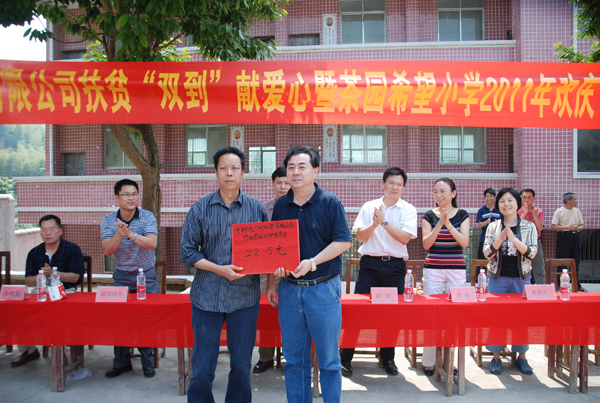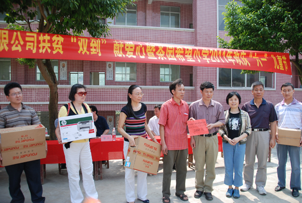 捐贈(zèng)儀式上,廖兵代表公司向茶園村捐贈(zèng)扶貧資金22萬(wàn)元;薛煒代表化灌公司向沙坪鎮(zhèn)新農(nóng)村示范村捐助資金10萬(wàn)元;劉偉區(qū)副書(shū)記等干部代表公司向茶園小學(xué)贈(zèng)送了電腦、打印機(jī)、文具、圖書(shū)(含職工捐贈(zèng)圖書(shū))、辦公經(jīng)費(fèi)等設(shè)備和資金一批;公司與地方領(lǐng)導(dǎo)共同為 “茶園小學(xué)圖書(shū)室”及茶園村委會(huì)“農(nóng)家書(shū)屋”揭牌等。
