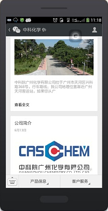 中科院廣州化學(xué)有限公司(廣州化學(xué))官方微信正式開(kāi)通了!通過(guò)官方微信,將為您提供廣州化學(xué)相關(guān)產(chǎn)品介紹、重點(diǎn)產(chǎn)品推介、公司簡(jiǎn)介、交通及行車(chē)線路等相關(guān)信息服務(wù),同時(shí)也會(huì)定期向您發(fā)送公司的最新動(dòng)態(tài)和信息,您還可以通過(guò)編輯文字或直接語(yǔ)音等方式,隨時(shí)與廣州化學(xué)微信暢聊。