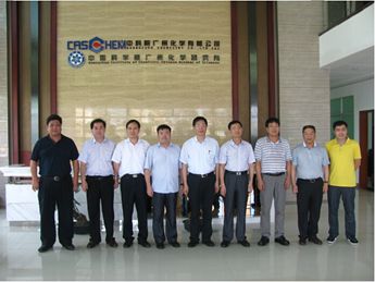 6月29-30日,中科院秘書長、中科院經營性國有資產監管委員會主任鄧麥村在中科院廣州分院副院長周傳忠的陪同下到中科院廣州化學有限公司南雄材料生產基地(南雄基地)和公司本部調研,現場視察了南雄基地的生產、倉儲、消防、供電等設施和公司本部的研發實驗室及儀器設備,并與公司領導班子成員針對技術創新鏈與產業鏈的有效嫁接議題進行了座談。