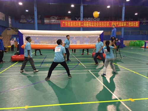 本次趣味運動會由省直機關(guān)工委主辦,省直機關(guān)工會承辦。自11月27日開始,近80支省直代表隊按工會聯(lián)系片,分為多組在“萬眾一心”、“快樂連連看”、“泡泡足球”、“趣味氣排球”、“腳踏實地”、“快樂多米諾”等六個競技項目進行激烈角逐。廣州化學(xué)排球隊代表廣州分院參加了趣味氣排球比賽。