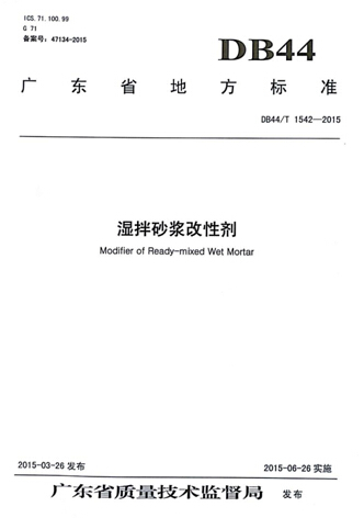 由廣州化學主持制定的《濕拌砂漿改性劑(DB44/T 1542-2015)》廣東省地方標準已經由廣東省質量技術監督局于2015年3月26日發布,2015年第10號(總第190號)中國地方標準備案,并于日前完成印刷,進入防偽、出版階段。5月25日,廣州化學收到“濕拌砂漿改性劑地方標準”的印刷版首版。
