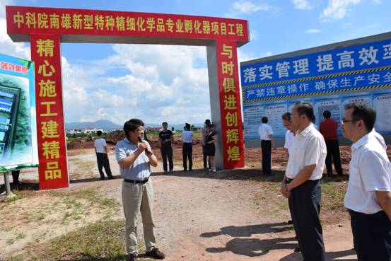 殷煥明一行參觀了中科院南雄新型特種精細(xì)化學(xué)品專業(yè)孵化器(孵化器)二期建設(shè)項(xiàng)目,呂滿庚介紹了孵化器的建設(shè)、運(yùn)營模式、運(yùn)營目標(biāo)等情況,并對(duì)韶關(guān)市相關(guān)部門一直以來給予孵化器建設(shè)的大力支持表示了感謝。殷煥明表示韶關(guān)市委市政府將繼續(xù)全力支持孵化器的建設(shè),希望孵化器加快建設(shè)進(jìn)度,為韶關(guān)地區(qū)的產(chǎn)業(yè)化提供專業(yè)的技術(shù)驗(yàn)證和孵化支持,推動(dòng)韶關(guān)地區(qū)企業(yè)的技術(shù)提升和產(chǎn)品的升級(jí)換代。