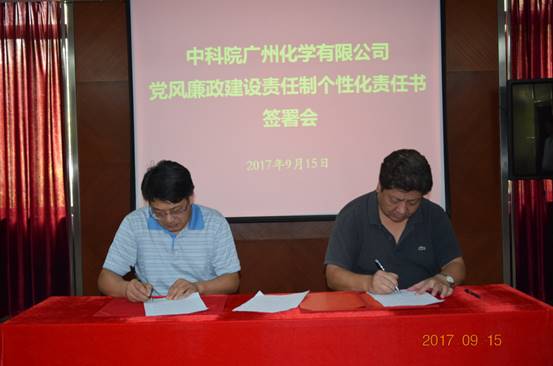 為全面貫徹落實(shí)全面從嚴(yán)治黨要求,進(jìn)一步推動(dòng)黨風(fēng)廉政和反腐倡廉建設(shè),同時(shí),按照重新修訂的《中科院廣州化學(xué)有限公司黨風(fēng)廉政建設(shè)責(zé)任制實(shí)施細(xì)則》(實(shí)施細(xì)則)的要求,廣州化學(xué)組織領(lǐng)導(dǎo)班子成員之間、分管領(lǐng)導(dǎo)與分管部門(mén)主要負(fù)責(zé)人之間、黨委副書(shū)記與各支部書(shū)記之間根據(jù)各自的職務(wù)職責(zé)按照實(shí)施細(xì)則的要求重新簽訂了個(gè)性化的責(zé)任書(shū)。
